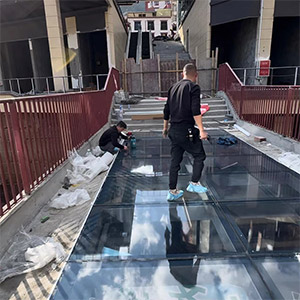 甘孜格薩尓王城5A景區(qū)卓陵湖玻璃棧道平臺建設施工案例